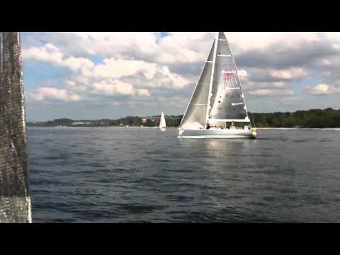 Vi rundade nyss märket vid Visby i lättvind och blev sen överkörda av de större båtarna som seglar B-banan. De kom med vinden så nu ligger vi mitt bland 35-40 fotarna.